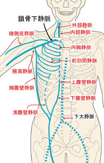 そして鎖骨下静脈です。静脈が最終的に心臓に戻るルートは二つです。一つは下半身や骨盤および内臓の静脈を集めて心臓に戻る下大静脈です。もう一つが鎖骨下静脈です。鎖骨下静脈は一見すると、頭部や上肢(手や腕)の静脈と全身のリンパを集めて心臓に戻るルートですが、静脈のルートをよく観察しますと、腹部や背部、そして下半身の体表部の静脈まで鎖骨下静脈へのルートを持っています。下大静脈は主に内臓の静脈を、そして鎖骨下静脈はそれ以外の全身の静脈の通り道なのかもしれません。