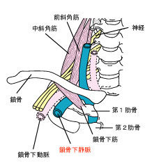 静脈やリンパが停滞するのは二つの理由が考えられます。ひとつは筋肉の働きが悪いことです。もう一つは関節が捻れていたり、股関節(鼡径部)や脇の下(腋窩)など狭いところで停滞してしまうことです。鎖骨下静脈での停滞はこちらです。