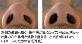 それを、鼻骨や頬骨をはじめ頭蓋の骨を丁寧に一つずつ修正していきますと、普通の常識的な認識では考えられないかもしれませんが、三日月のように細かった鼻の穴が半月以上の形に広がります。そして鼻翼がしっかりし、意志で動かすことができるようになります。