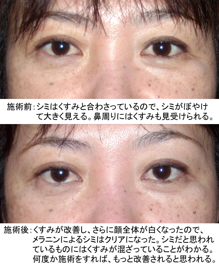 Aシミやくすみ‥シミにはくすみが混じっていることが多いので、薄くなる可能性もある