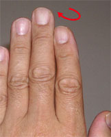 私ごとですが、かつて野球の投手を一生懸命やっていた時期がありました。肘や肩を故障した経験もあります。今こうして整体という視点で自分の肩や肘、指先などを見てみますと、ボールを投げていた左手の人差し指の第一関節が甘くなって、指先が反時計回りに捻れており、それが全身に影響を及ぼしているのがわかります。指先の捻れによって腕から肩・首にかけての筋肉のバランスが崩れ頭蓋骨(後頭骨)が少し右上の方にずれています。それは背骨に影響を与え骨盤の不安定さにつながっています。疲労がなければ体のどこか他の部分でその弱点を補ってくれるので問題はないのですが、疲労がたまってくると骨盤の不安定さが増し、腰痛になってしまいます。その他にも右のまぶたが重く感じられ顔の右側がなんとなくスッキリしなくなります。 |