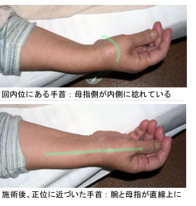 腱鞘炎がなかなか治まらないと、「手術」という文言まで登場することもあるようですが、この回内位になった手首を正しい状態に戻すだけで、腱鞘炎やバネ指が良くなり、親指にしっかり力が入るようになることも多々あります。