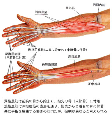 つまり、深指屈筋である指先の筋肉は体の深く、骨に近いところの筋肉であって、頑張りがきく筋肉なのです。骨格を支えるためにはこの筋肉がしっかりしている必要があります。