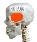 片頭痛で一番多い場所はこめかみ辺りになりますが、ここは側頭筋のあるところです。側頭筋がこわばるとそれが直接頭蓋骨を締めつけるようになりますので即、頭痛・片頭痛という症状を招きます。