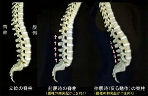 また、反る動作を背骨(24個の脊椎の連続)の動きで観察しますと、一つ一つの脊椎が下を向く運動ということになります。このときどれかの脊椎が下を向くことができなければ、反る動作がその部分で途切れてしまうためできなくなります。首を持ち上げるだけでも痛いなら頚椎に問題があるのかもしれません。胸のところで痛みを感じるなら胸椎、反る動作の最後の部分で痛むなら下位腰椎の問題と考えることができます。